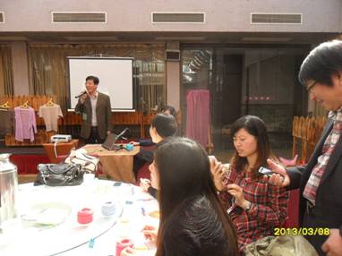 在活動現場,首先映入眼簾的是三件鉤針毛衣成品,它們是這次的指導老師孫老師帶來的作品,而在學員的桌子上,都有一朵美麗的蝴蝶花,這個是今天的授課內容,也是我們的現場作業。本次活動的開場,首先是國電能源院工會主席趙希樵代表集團公司領導向全體女同胞們送上節日的祝福,國電能源院院長辦公室主任許國文向大家簡要介紹了本次活動的具體事項安排,隨后指導老師手把手的從基本功教起,會場的主屏幕上也循環播放鉤針基本手法的運用,各位躍躍欲試的女同胞們都開始了穿針引線…