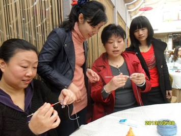 指導老師耐心的跟我們講:“鉤針是一門編織藝術,簡單易學,工具也很容易掌握,只需要一根鉤針和一團線,就可以編織出很漂亮的鏤空圖案,編織中,讓線保持相對靜止,針繞著線動作”。近三個小時的手工課,學員們從持針持線學起,辮子針是基本功,通過起針、并針、短針、中長針、交叉針、收針手法的結合,混合練習,感受到了針線世界的樂趣,努力好學的佼佼者們脫穎而出,當手中的蝴蝶花開始翩翩飛舞,這堂生動活潑的課程也就接近了尾聲,大家紛紛表示此類活動的開展有益于舒緩工作壓力,培養創意思維,同時給自己的家庭生活帶來新亮點。