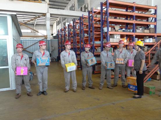 7月23日,炎炎夏日,正值中伏,是一年中氣溫最高且又潮濕悶熱的日子,杭州華源前線能源設備有限公司的一線工廠正在熱火朝天的趕著各個項目工期,高溫不減關懷和熱情,頂著39的溫度,杭州國電能源環(huán)境設計研究院黨委副書記鄭喜梅、杭州國電能源環(huán)境設計研究院副院長、工會主席趙希樵、杭州國電能源環(huán)境設計研究院辦公室主任許國文一行到杭州華源前線能源設備有限公司對堅持在生產(chǎn)一線的員工進行慰問,和員工親切交談,傾聽來自基層的聲音,并發(fā)放飲料及風扇等避暑降溫物品,給員工送去了一股涼意,讓員工感受到了領導的關懷。物品發(fā)放完畢后,鄭書記等還去車間看望生產(chǎn)情況,詢問一些需要發(fā)貨的大型鍋爐項目,對于我們的工作非常關心,也給予了肯定。