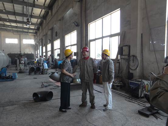鄭書記看望工人的時候,叮囑大家要合理安排工作,注意勞逸結(jié)合,既要做好本職工作,同時要注意身體健康和保證生產(chǎn)安全。此外,鄭書記還特別看望了崗位標兵陳華彬,了解陳華彬的工作和生活情況,得知陳華彬不僅本人技術(shù)過硬,今年工廠利用業(yè)余時間舉行內(nèi)部非持證焊工考證及持證焊工增項培訓班,陳華彬擔當技能指導,對十多位員工進行焊接技術(shù)培訓,現(xiàn)在經(jīng)培訓,部分員工已能獨立完成焊接工作,鄭書記鼓勵大家一定要樹立典型,學習榜樣,并要對先進事跡給予宣揚,對于崗位標兵陳華彬的成長和示范作用感到十分的欣慰!