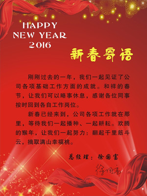 早上鬧鈴一響,又見廠旗飄揚。2016年2月15日,這是春節假期后的第一個工作日,源牌集團杭州華源前線能源設備有限公司的各位同事重返工作崗位,懷揣著愉快的心情,祝福我們的團隊:開工大吉…… 一早,源牌集團黨政聯席會領導鄭喜梅、陳永林、趙希樵、許國文等一行,來到源牌集團各部各子公司拜年。華源前線董事長蔣聞文與總經理徐國富陪同,親切走訪慰問華源前線的每一位員工,與大家親切交談、一一握手。一句簡單的新年好,表達著領導班子對全體工作人員的問候與祝福。華源前線總經理徐國富也發表新春寄語,從即日轉入工作模式,以飽滿的熱情迅速投入到新一年的工作中。
