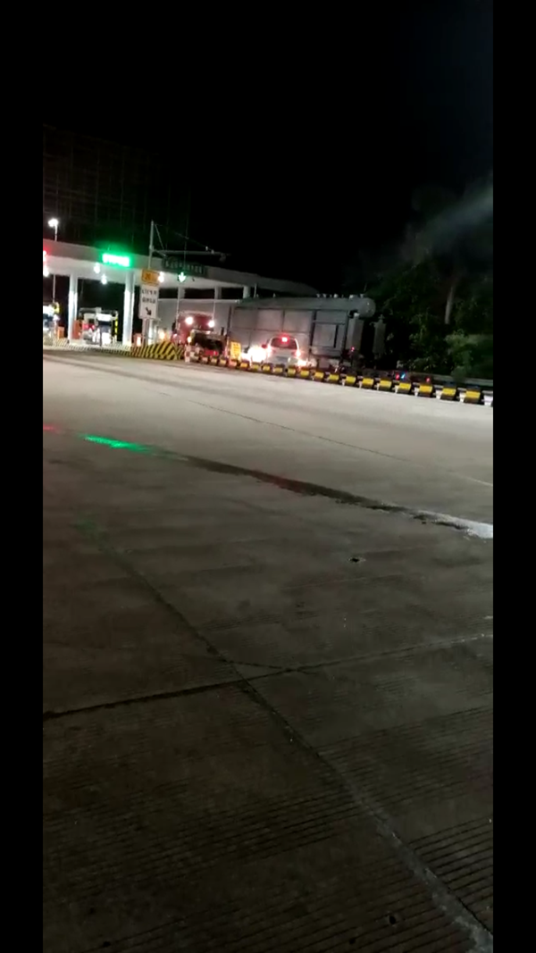 與此同時(shí),我們也遇到了新問題,因?yàn)檫\(yùn)輸鍋爐的車輛屬于特種車輛,車廠25米,為滿足車輛轉(zhuǎn)彎半徑需要,只能從高速收費(fèi)站逆行上橋口駛出。