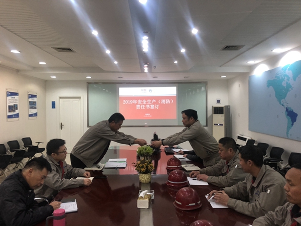 隨后單永平經(jīng)理與各班組負(fù)責(zé)人簽訂了《2019年安全生產(chǎn)(消防)責(zé)任書》。