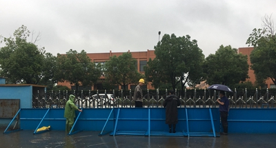 A 生產部積極組織人員,在廠區北門用沙袋進行封堵,防止因地勢低洼造成水流倒灌進入廠區:
