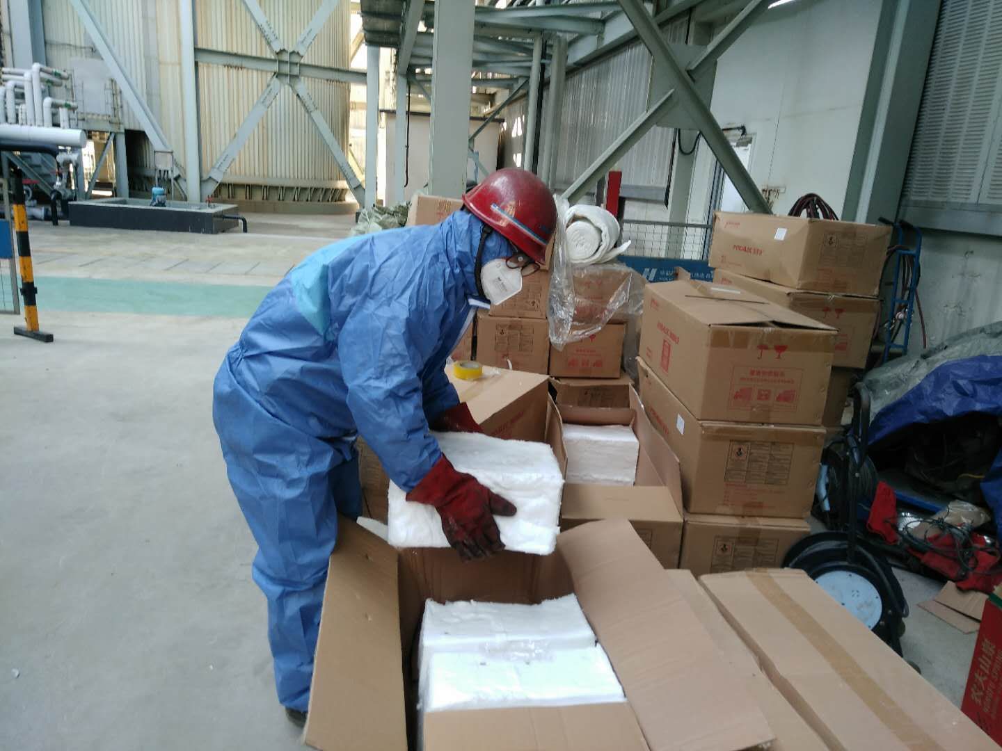 隨著復工復產的進行,桐鄉(xiāng)工業(yè)園區(qū)逐漸復工。為了能承擔起大面積企業(yè)復工的供暖工作,原先的燃氣鍋爐需停爐檢修。但之前安裝特殊保溫材料的廠家來自湖北公司,因為疫情無法到達現(xiàn)場。為了園區(qū)內的企業(yè)能夠正常復工復產,華源前線主動擔起責任,派廠內具有豐富保溫材料安裝經驗的師傅到達現(xiàn)場開展檢修工作。