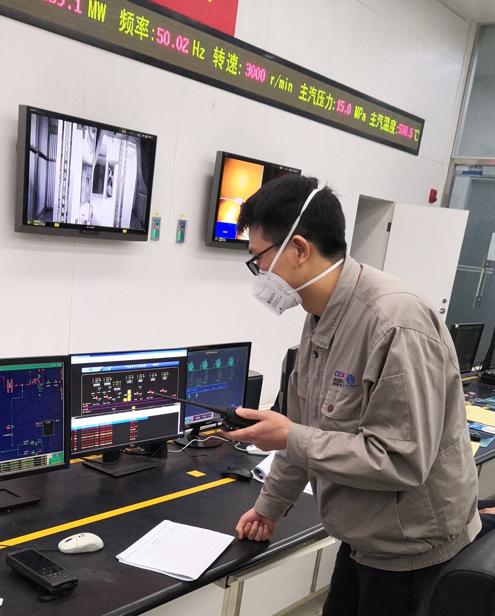 調(diào)試工程師阮拾萬在現(xiàn)場(chǎng)配合監(jiān)視鍋爐運(yùn)行參數(shù)