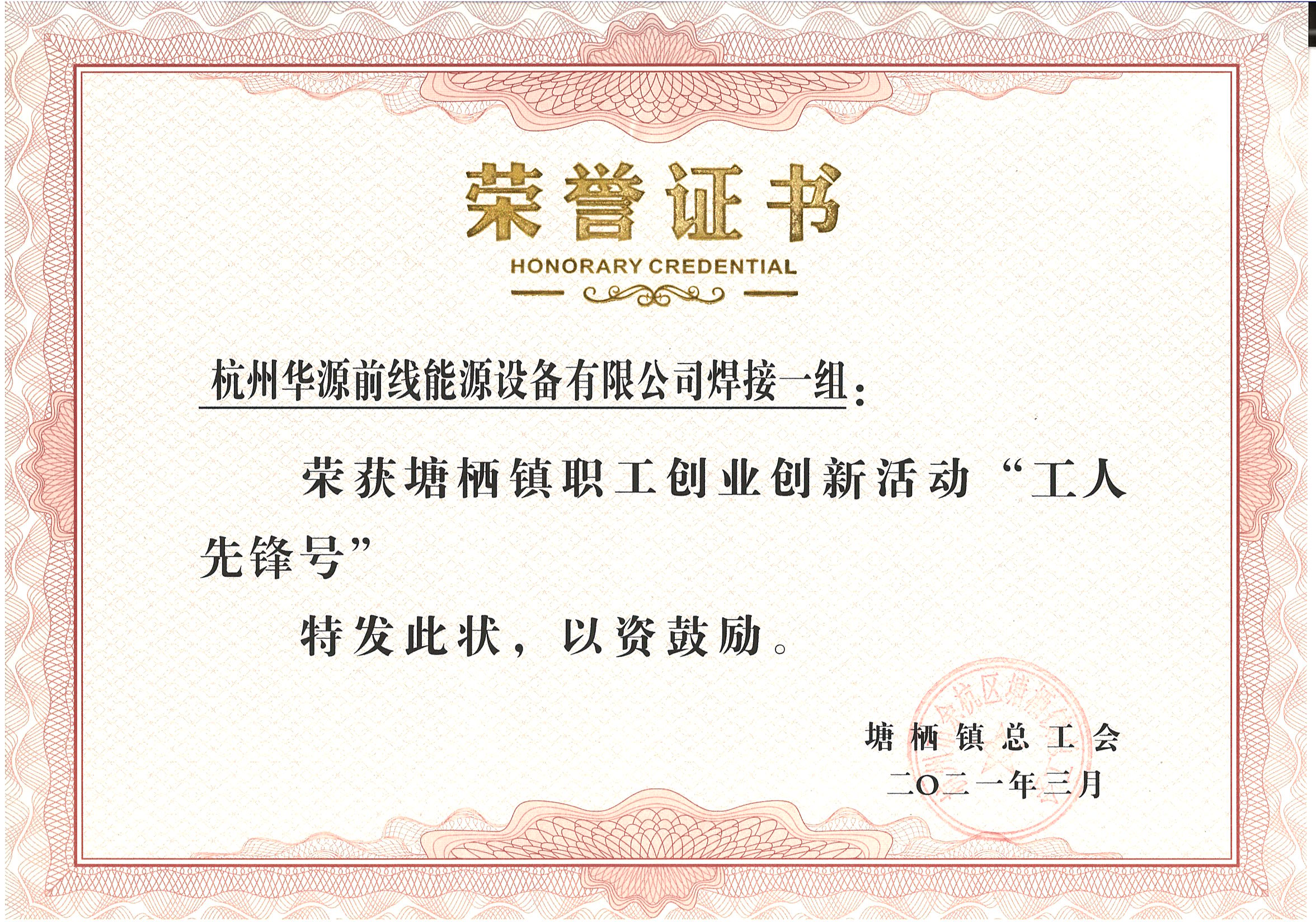焊接一組獲得塘棲鎮(zhèn)“工人先鋒號”稱號。獲評塘棲鎮(zhèn)最美工會志愿者、優(yōu)秀工會工作者及勞動競賽先進個人等多項榮譽。鎮(zhèn)黨委委員沈一鳴、鎮(zhèn)人大主席黃國連、副鎮(zhèn)長徐建明、塘棲鎮(zhèn)總工會主席張華余出席會議并為受表彰的先進單位和個人頒獎。