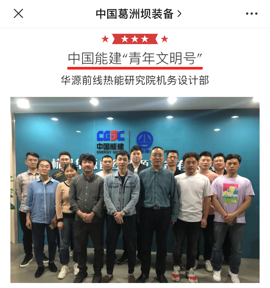 恭喜熱能研究院機務設計部的同事們緊握中國能建“青年文明號”。